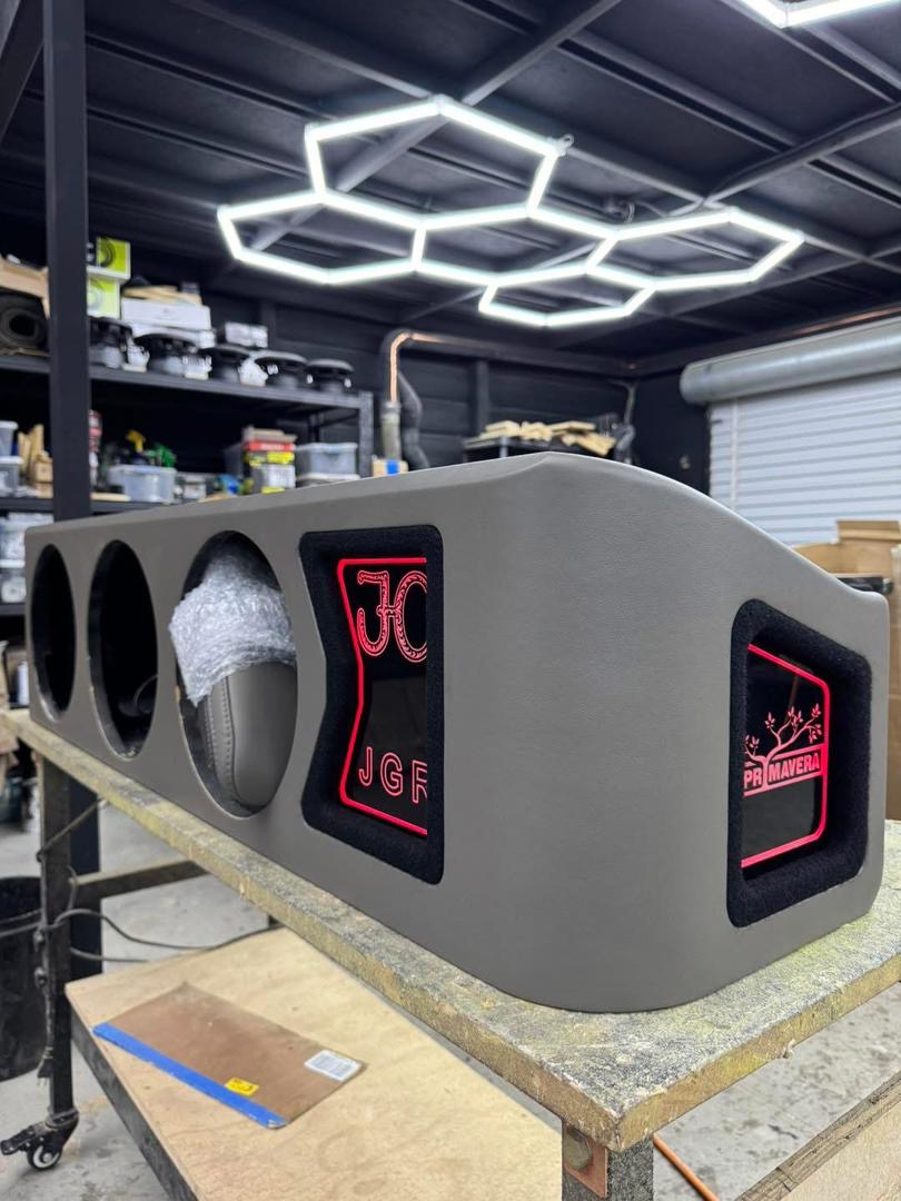 Built for truck audio enthusiasts who want powerful bass in a clean OEM-style installation, this custom quad 8-inch subwoofer enclosure combines performance, durability, and striking visual design. The enclosure is engineered to house four 8-inch subwoofers and features a signature Denali-inspired illuminated honeycomb grille panel that adds a premium custom touch to your truck interior.