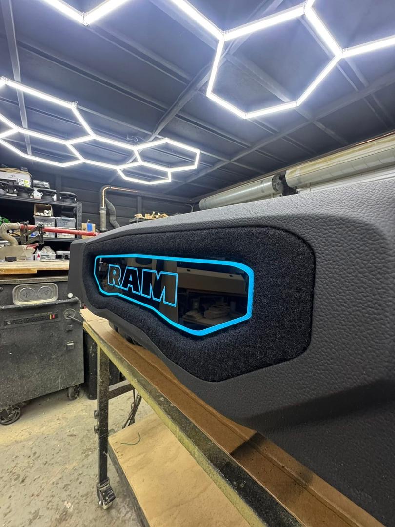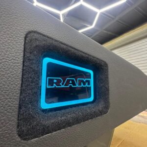 This premium custom truck subwoofer enclosure is designed for enthusiasts who want both powerful bass performance and a truly personalized audio setup. Built to house up to four subwoofers, the enclosure features two custom laser-engraved acrylic panels illuminated with vibrant LED lighting.