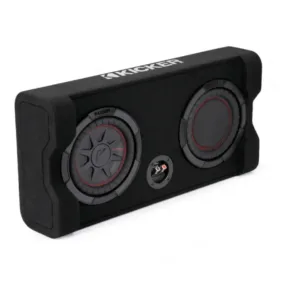 This item is Refurbished Features: Enclosure Type: Compact CompRT Loaded Power Handling 500 Watts RMS 1000 Watts PEAK Woofer Size: Single 12″ with a Passive 12″ Radiator Impedance: 2 Ohm (Final) Sensitivity: 98 dB Dimensions 27-1/2″ Width 14-5/8″ Depth 6-1/8″ Height Tough MDF Construction with Black Carpet